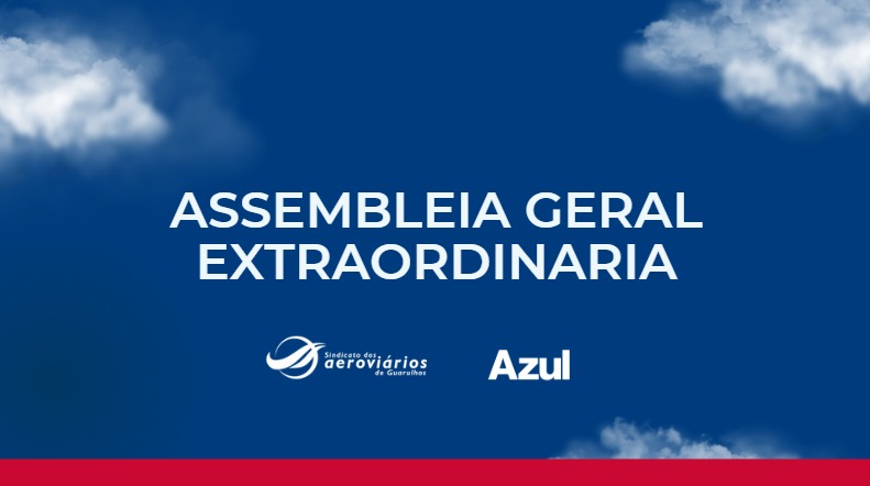 O Presidente do Sindicato dos Aeroviários de Guarulhos – SINDIGRU, no uso de suas atribuições estatutárias e legais, convoca todos os trabalhadores e trabalhadoras da AZUL Linhas Aéreas S.A. para participarem da assembleia que ocorrerá no período das 10h do dia 17/12/2025 até às 10h do dia 18/12/2025, onde os trabalhadores deverão deliberar sobre:
