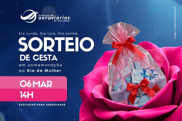 No dia 06 de março, o SINDIGRU celebra o Dia da Mulher com um sorteio especial de cesta, preparado com carinho para reconhecer a força e a sensibilidade de quem transforma o mundo todos os dias 🌸